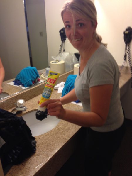 Wenn man schon ein Hotel mit Waschraum hat, sollte man das auch nutzen. Allerdings haben wir nur auf den Trockner zurückgegriffen, den Rest haben wir im Waschbecken erledigt. Das ging schneller als mit der Waschmaschine.