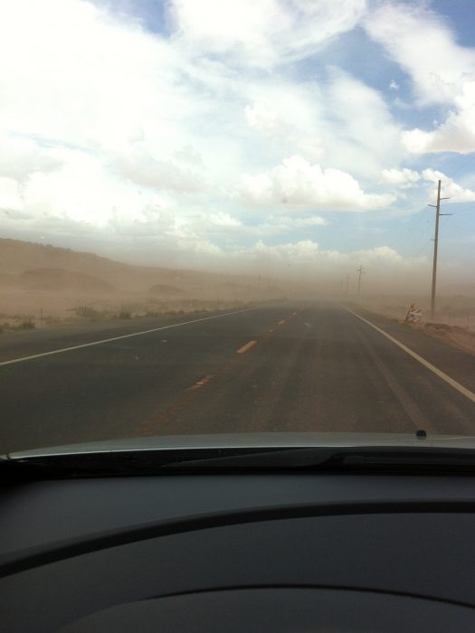 Die Fahrt zum Monument Valley war echt abenteuerlich. Bereits am Canyon haben sich die Wolken verdichtet. Und so war dieser Sandsturm noch harmlos im Vergleich zu den sintflutartigen Regenfällen und Gewittern.