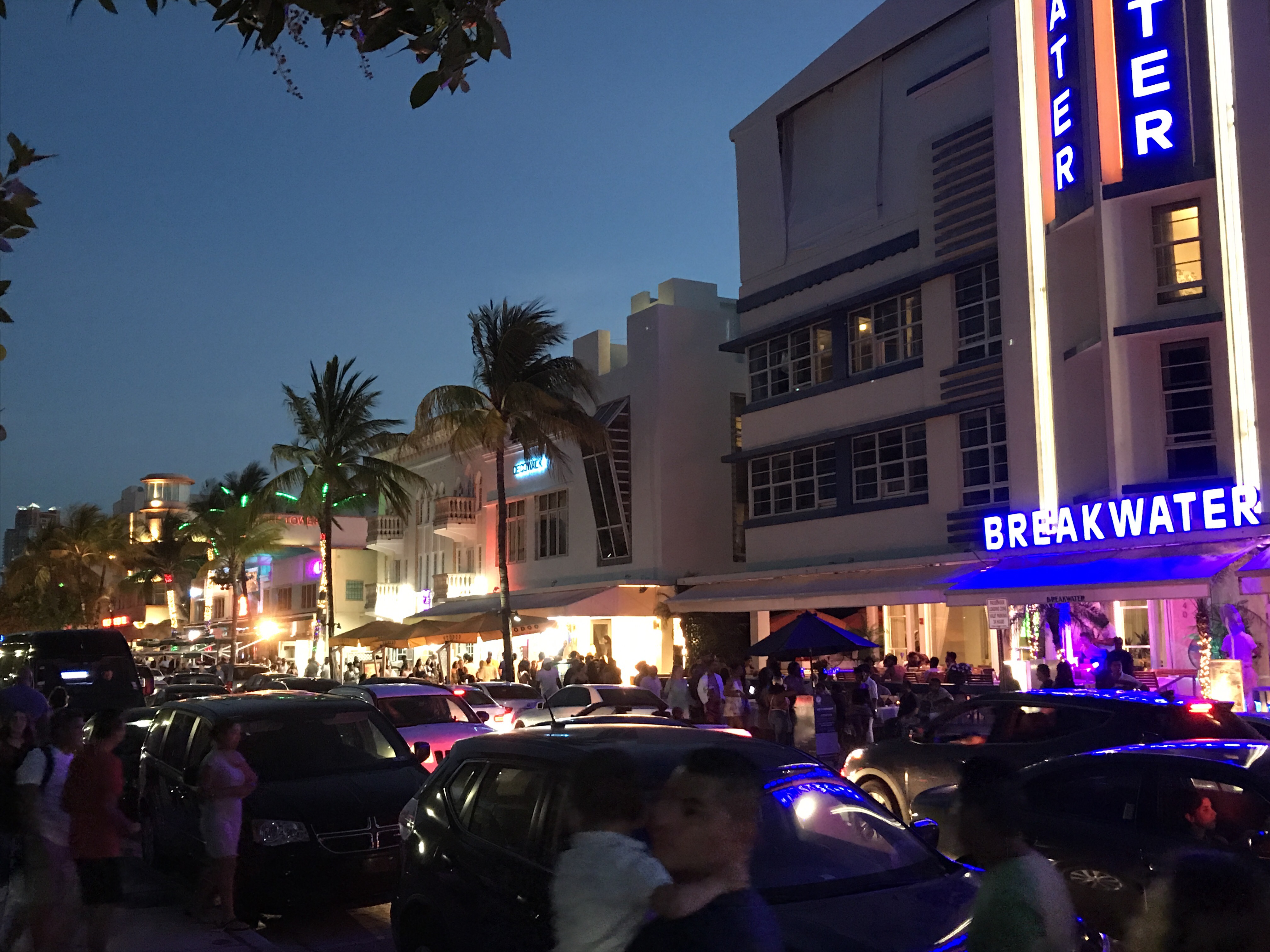 Samstag Abend, Ocean Drive. Bevor wir morgen nach Key West aufbrechen sind wir nochmal zum Strand und über den Ocean Drive zurück zum Hotel. Menschenmassen ohne Ende. Das krasse an Miami ist, dass hier wenig Englisch gesprochen wird. Überall wird man auf Spanisch angesprochen, weil hier so viele Hispanics Leben (die wiederum selbst nur schlecht Englisch sprechen). Selbst die englischsprachigen Einwohner fliehen aus Miami, weil sie keine Lust haben Spanisch zu lernen.